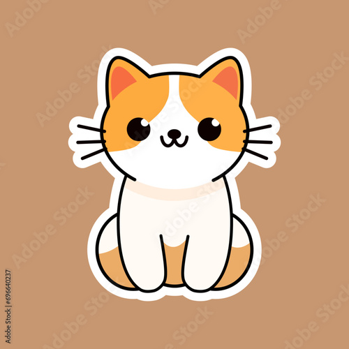 © Katherin, Obraz premium Cute white smiling cat with orange spots