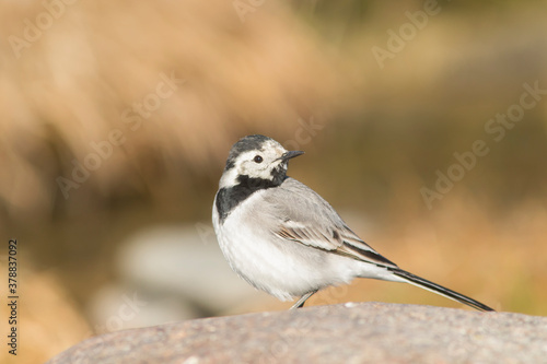 Obraz premium Cute white wagtail (Motacilla alba) standing on a stone on a sunny day