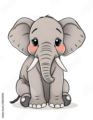© Adi, Naklejka premium cute wild animal illustration elephant sitting facing front illustration
