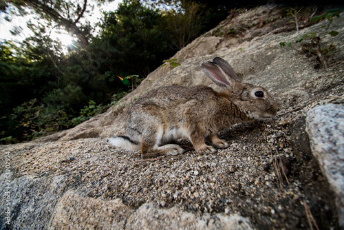 © Grassflowerhead, Obraz premium cute wild bunny rabbits in japan's rabbit island, okunoshima
