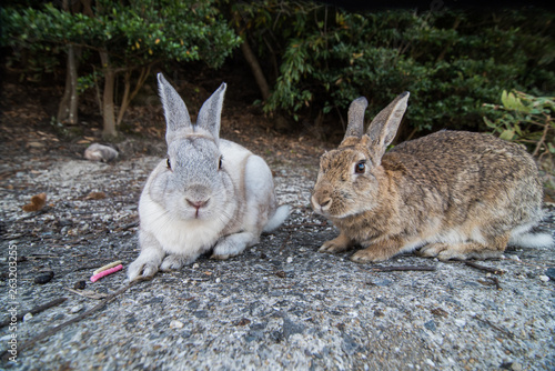 Obraz premium cute wild bunny rabbits in japan's rabbit island, okunoshima