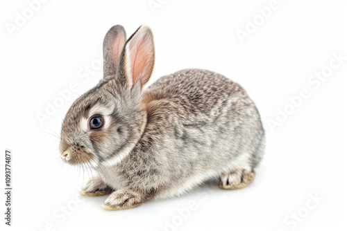 © Tetiana, Obraz premium Cute wild rabbit with big ears on white background cropped postcard