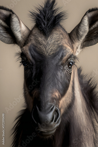 Fototapeta premium Cute wildebeest cub - Created with Generative AI technology.