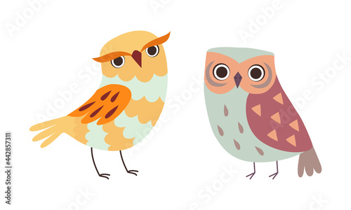 © topvectors, Fototapeta premium Cute Wise Owls Set, Funny Colorful Owlets Cartoon Vector Illustration