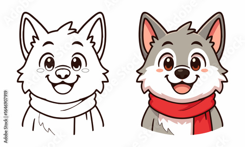 © barnawi, Obraz premium Cute wolf coloring page for kids