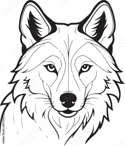 © Swapna graphics, Naklejka premium Cute Wolf line art illustration icon design, solid white background