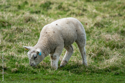 © Penny, Obraz premium cute woolly lamb grazing in the countryside