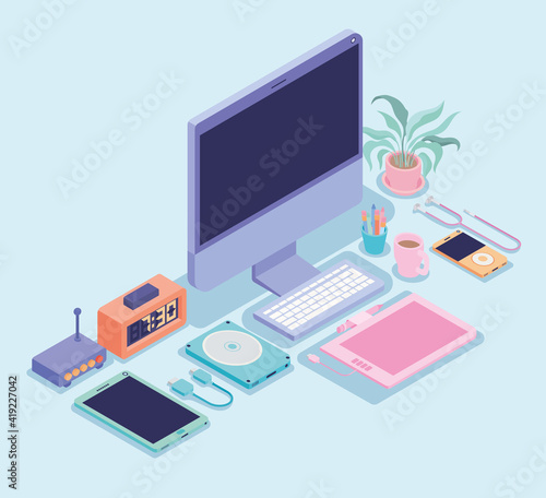 Obraz premium cute workplace icons