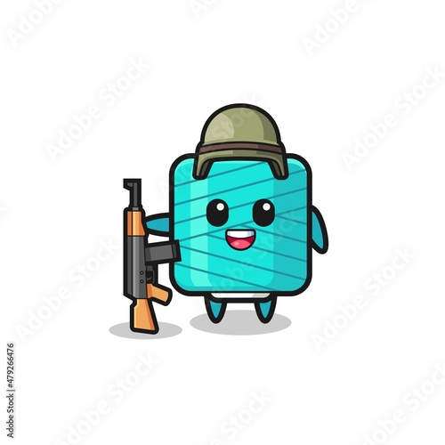 © heriyusuf, Obraz premium cute yarn spool mascot as a soldier