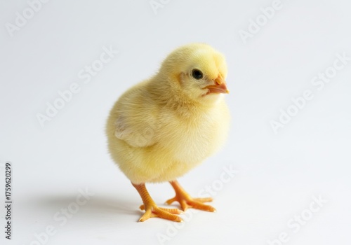 Fototapeta premium Cute Yellow Baby Chick Standing on White Background