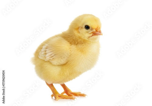 © taufiq, Fototapeta premium Cute Yellow Baby Chick Standing on White Background