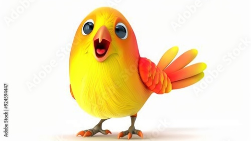 © Gendut, Obraz premium Cute Yellow Bird with Big Eyes and Open Mouth