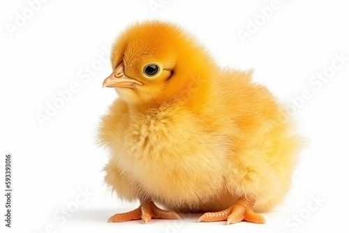 Fototapeta premium cute yellow chick sitting on a white background. Generative AI