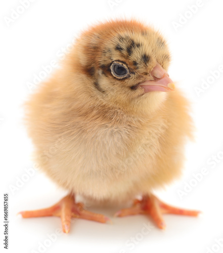 © Anatolii, Fototapeta premium Cute yellow chick standing isolated on white background close up