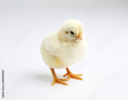 © karina, Obraz premium Cute Yellow Chick Standing on White Background