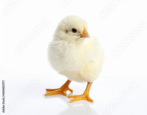 © karina, Obraz premium Cute Yellow Chick Standing on White Background