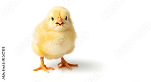 © Proliman, Fototapeta premium Cute yellow chick standing on white background looking directly