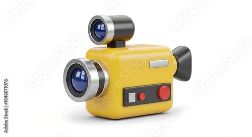 © Naveed , Fototapeta premium Cute yellow 3d video camera icon isolated on a white background
