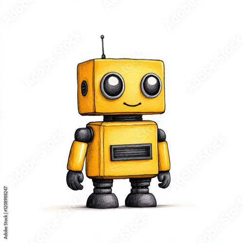 Fototapeta premium Cute yellow robot character with big eyes and friendly smile