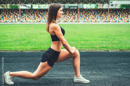 Fototapeta premium Cute young brunette sporty girl workout outdoor