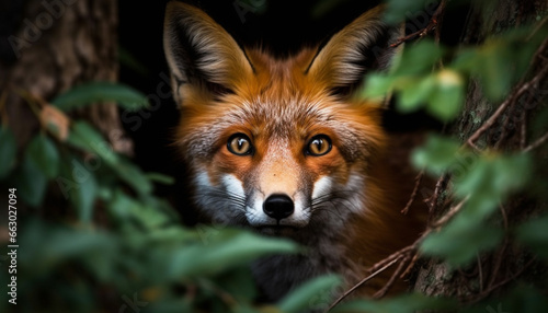 Fototapeta premium Cute young fox staring with alertness in natural wilderness area generated by AI