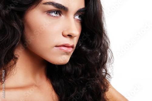 © Mirma, Fototapeta premium Cute young girl posing on white background. Isolated.