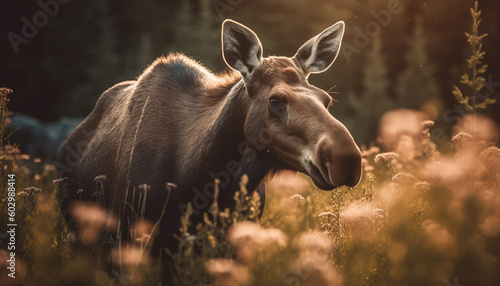 Fototapeta premium Cute young goat grazing in green meadow generated by AI