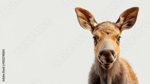 © ADD PHOTO, Naklejka premium Cute Young Moose Portrait on Neutral Background