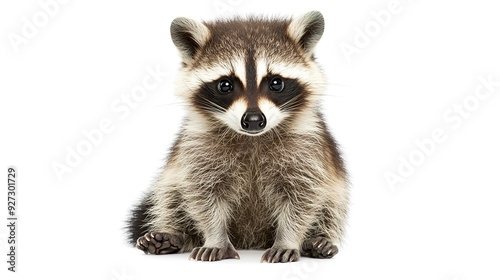 © Thanthara, Fototapeta premium Cute Young Raccoon Sitting on White Background