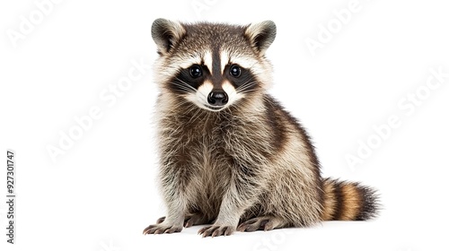 © Thanthara, Fototapeta premium Cute Young Raccoon Sitting on White Background