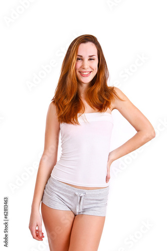 © majesticca, Fototapeta premium Cute young woman on white background