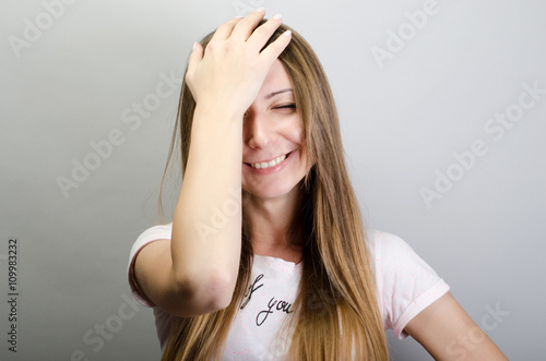 © patramansky, Fototapeta premium Cute, young woman smiling do facepalm
