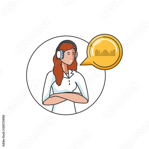 © djvstock, Obraz premium cute young woman with earphones and speech bubble