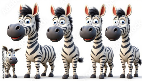 © Atchariya63, Obraz premium Cute zebra cartoon smiling zebra baby zebra safari animal black and white stripes big eyes playful herd funny character happy mood