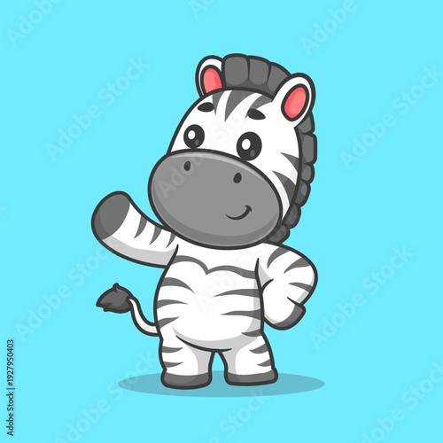 Fototapeta premium Cute Zebra Waving Hand Cartoon