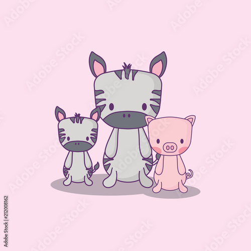 Obraz premium cute zebras and pig over pink background, colorful design. vector illustration
