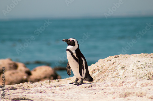 © laura, Fototapeta premium Cuteness overload: funny african penguins living free in south african beach (Boulder Beach Penguin Colony)