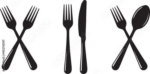 Fototapeta premium Cutlery Silhouette Fork Knife Spoon Illustration Set