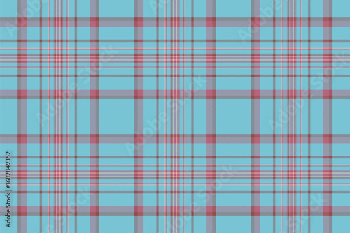 © Olena, Fototapeta premium Cutout textile check plaid, card background pattern vector. Scenery seamless texture tartan fabric in red and cyan colors.