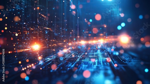 Fototapeta premium Cutting-edge blue digital circuit board background featuring abstract...