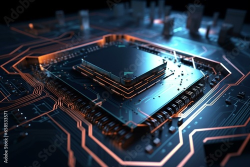 Fototapeta premium Cutting-edge circuits on abstract 3D backdrop. Generative AI