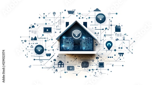 © Marketplace, Obraz premium Cutting Edge Digital Nomad Smart Home Blueprint Showcasing AI Powered Workspace Automated Energy Saving Systems and Tech Advanced Minimalist Design