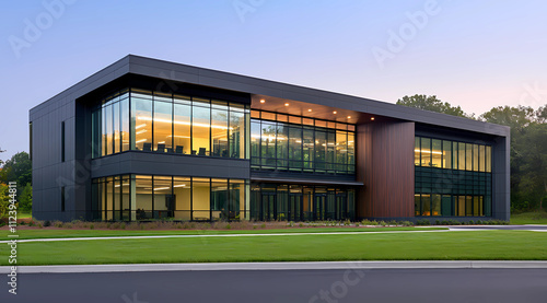 Fototapeta premium Cutting-Edge Office Building with Sleek Glass Windows and Contemporary Architecture