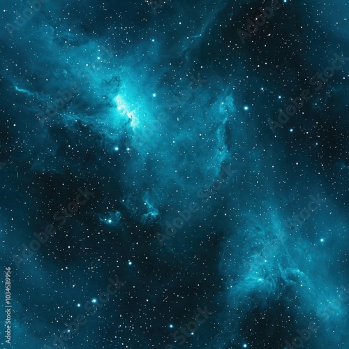 © Ricky, Fototapeta premium Cyan Blue Outer Space Galaxy Seamless Pattern Texture