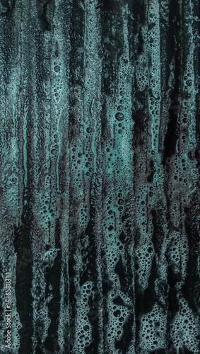 © FalOpang, Fototapeta premium Cyan-colored laundry detergent on a laundry board, close-up shot, abstract background