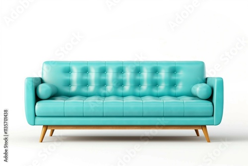 © Digital Waves, Obraz premium Cyan Couch , Isolated white background, flat lay