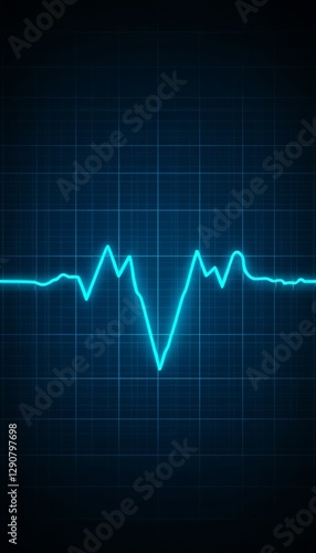 © Ilja, Naklejka premium Cyan Heartbeat Line on Dark Blue Grid Background A Vibrant Vector Illustration of Vital Signs