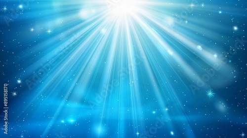 © Ilja, Naklejka premium Cyan light burst abstract beautiful rays on dark background with turquoise and golden sparkles