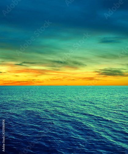 © meryll, Obraz premium Cyan yellow sea water sky clouds background