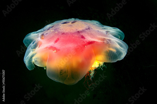 © kondratuk, Obraz premium Cyanea jellyfish (also known as Lion Jelly) swims in the dark.
